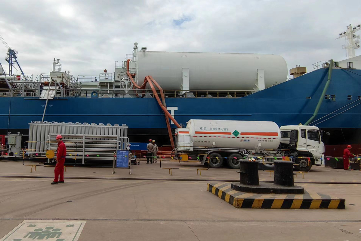 2,LNG雙燃料船的LNG 燃料艙預冷加注項目,提供氣體試驗及LNG燃料加注成套服務,包括(不限于)氣源(LNG&LN2)供應、現場氣試加注服務(技術服務、設備租賃、現場操作及回氣處理等服務)。